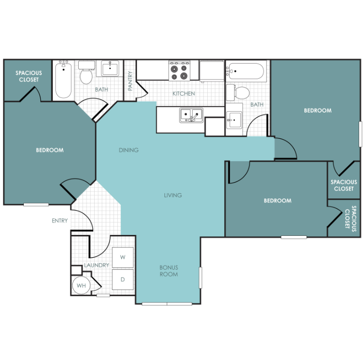 - Spacious One, Two, and Three-Bedroom Floor Plans